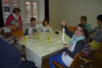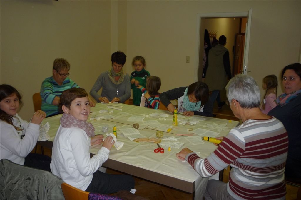 Kinder und Erwachsene haben Sterne und Engel gebastelt. Wer dazu keine Lust hatte, konnte beim Flohmarkt stöbern oder in der Bücherei sich informieren. Bei Kaffee und Kuchen war ein reger Austausch unter den Besuchern möglich. Das Büchereiteam bedankt sich bei allen Helfern, Kuchenspendern und Besuchern.
