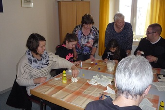 vergrößern Maria FörthWer wollte, konnte bei Hilly Webert Seerosen basteln. Bücher konnten ausgeliehen oder über die Ausstellung zum Verschenken bestellt werden.