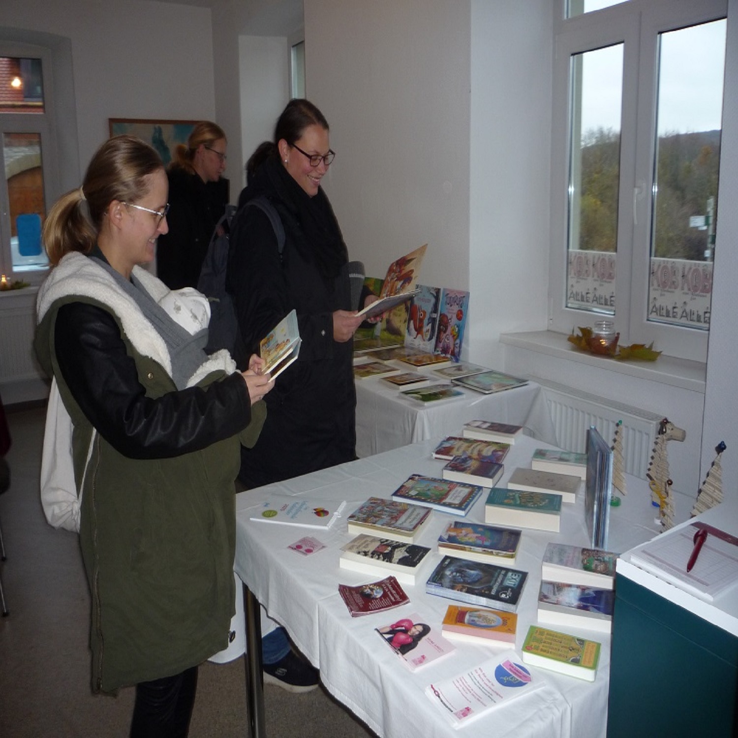 Im Nebenraum der Bücherei war eine Buchausstellung aufgebaut, bei der die Besucher über die Bücherei bestellen konnten. Auch konnten sich die Besucher/innen über die Neueinstellungen informieren, die im Laufe des Jahres in den Bestand der Bücherei aufgenommen worden sind und Ausleihungen tätigen. Beim Bücherflohmarkt hatten die Besucher/innen die Möglichkeit, aussortierte Bücher günstig zu erwerben.