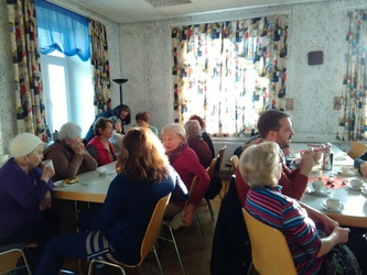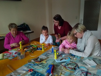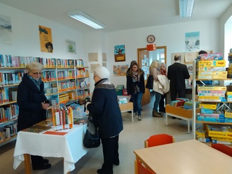 Erwachsenen konnten sich bei Kaffee und Kuchen austauschen. Sie hatten auch die Möglichkeit, sich über das Angebot der Bücherei zu informieren und beim Flohmarkt ein Schnäppchen zu machen.